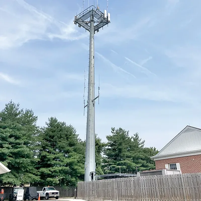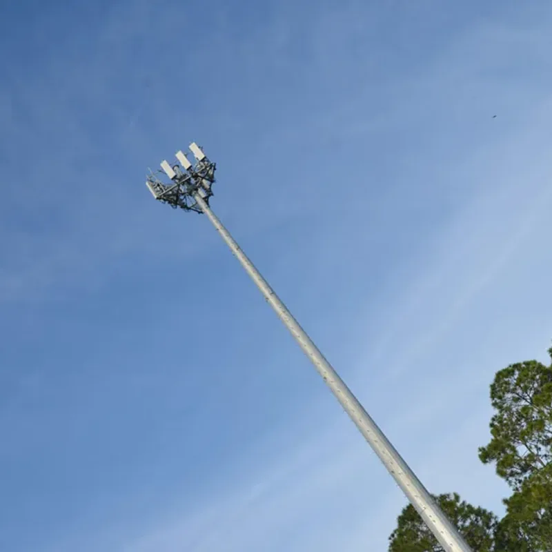 A torre de células monopolas adota aço de alta resistência (como Q345B ou ASTM A572), com design de seção transversal otimizada, e tem uma resistência ao vento de 30-50m/s (tufão de 10-12). Flange de base ou conexão de plug-in garante a estabilidade geral da torre.